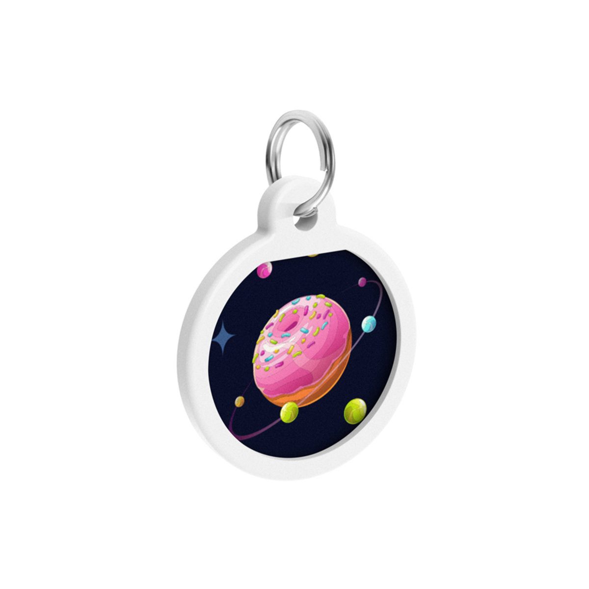 WAUDOG Smart ID metal pet tag with QR passport, «Donuts universe» design, round, D 1"