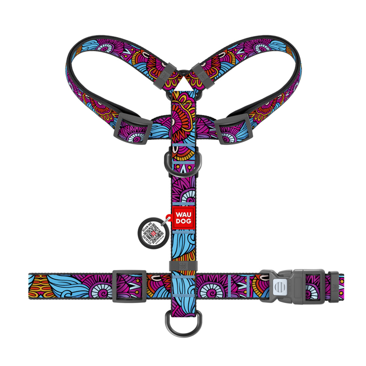 WAUDOG Nylon dog H-harness with QR passport,"Summer" design, plastic fastex, M, A 16,53"-26,77", B 19,68"-31,49"