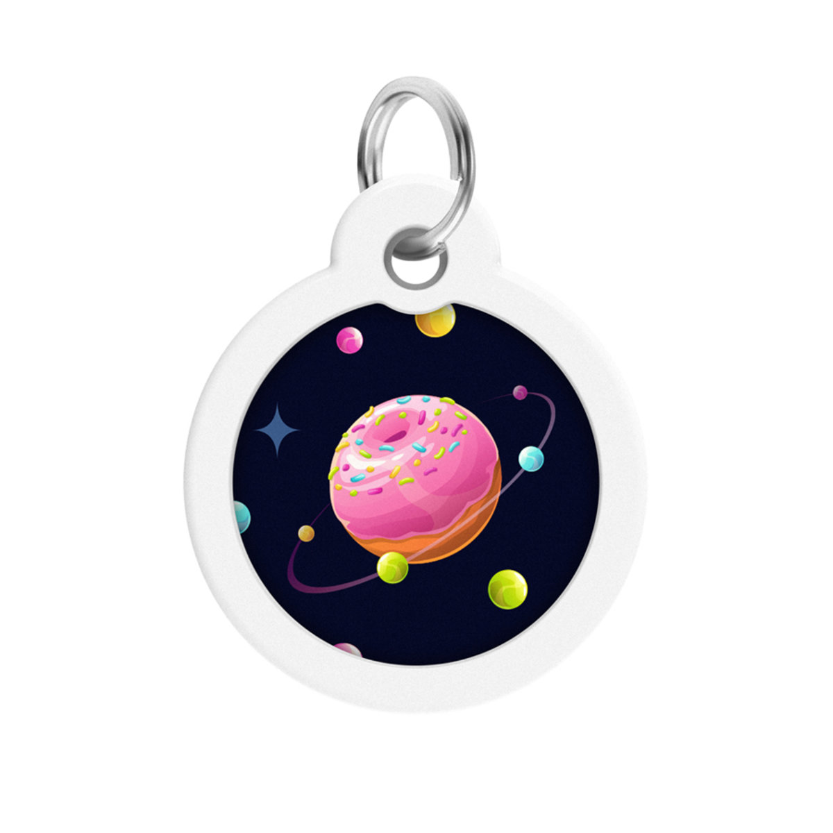 WAUDOG Smart ID metal pet tag with QR passport, «Donuts universe» design, round, D 1,2"