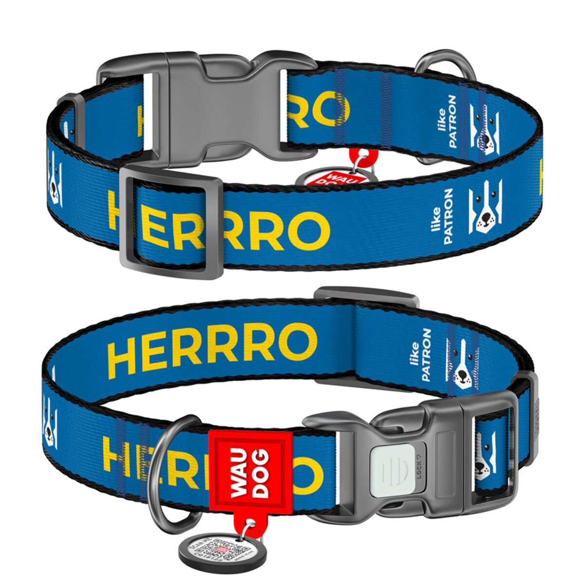 WAUDOG Nylon dog collar with QR pet tag, "Patron" design, plastic fastex, L, W 1", L 13"-19"