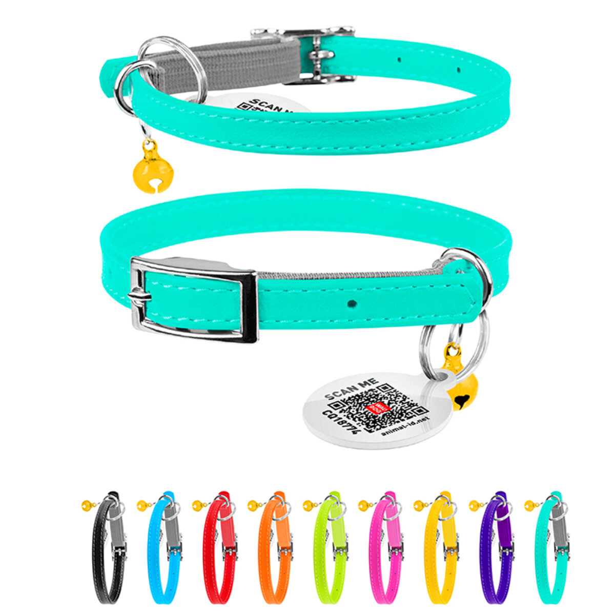 WAUCAT Glamour genuine leather cat collar with QR passport, without decorations, XXS, W 3/8", L 9"-11" mint