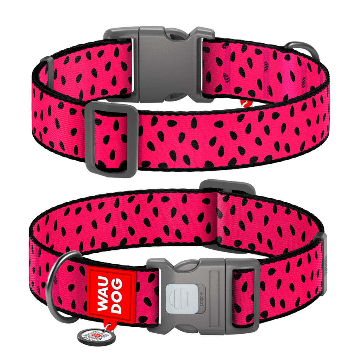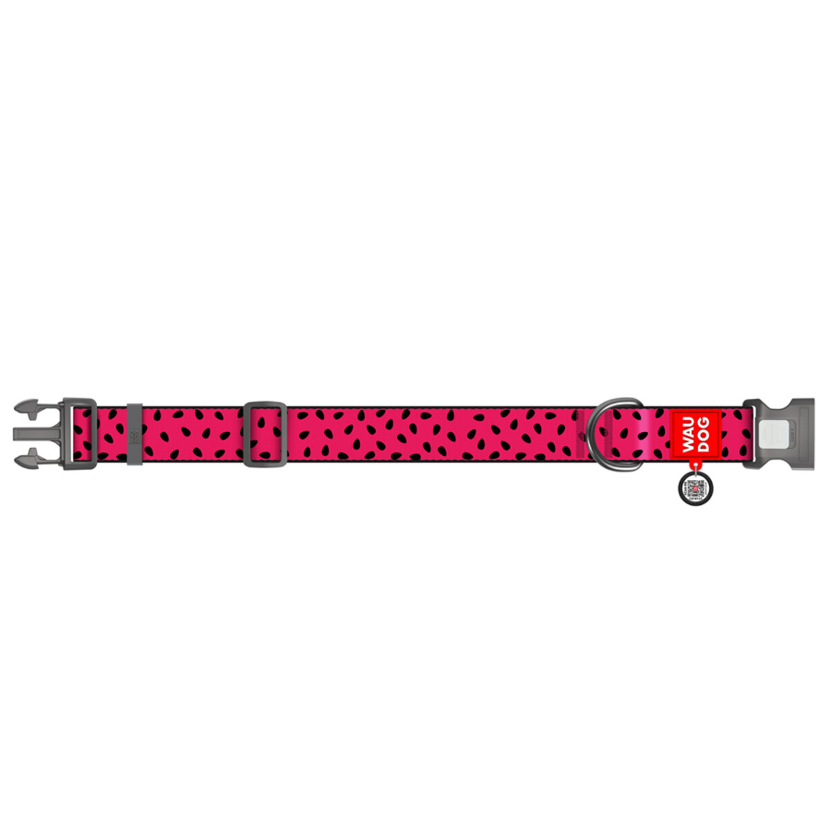 WAUDOG Nylon dog collar with QR passport, "Watermelon" design, plastic fastex, XXL, W 1 3/8", L 19"- 27"