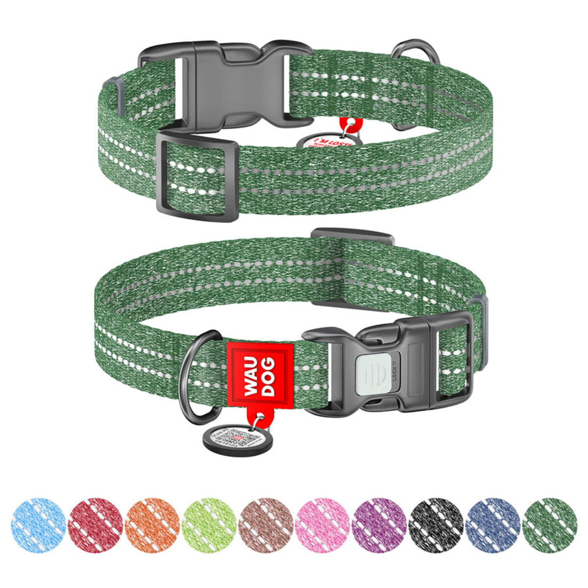 The WAUDOG Re-cotton collar is made from recycled, eco-friendly raw materials. Soft to the touch band with increased strength is hypoallergenic, which means it is completely safe for the pet. The reflective thread inserts on the collar provide additional safety. Stylish melange colours give the products an attractive look.