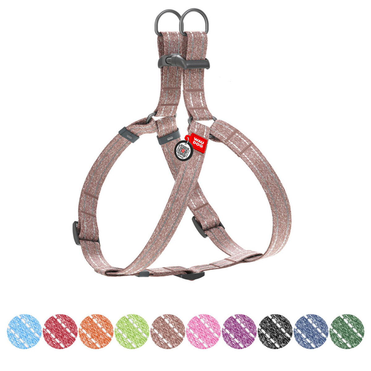 WAUDOG Re-cotton recycled material dog harness with QR passport, reflective, plastic fastex, L, W 1", L 23,62"-33,46" brown