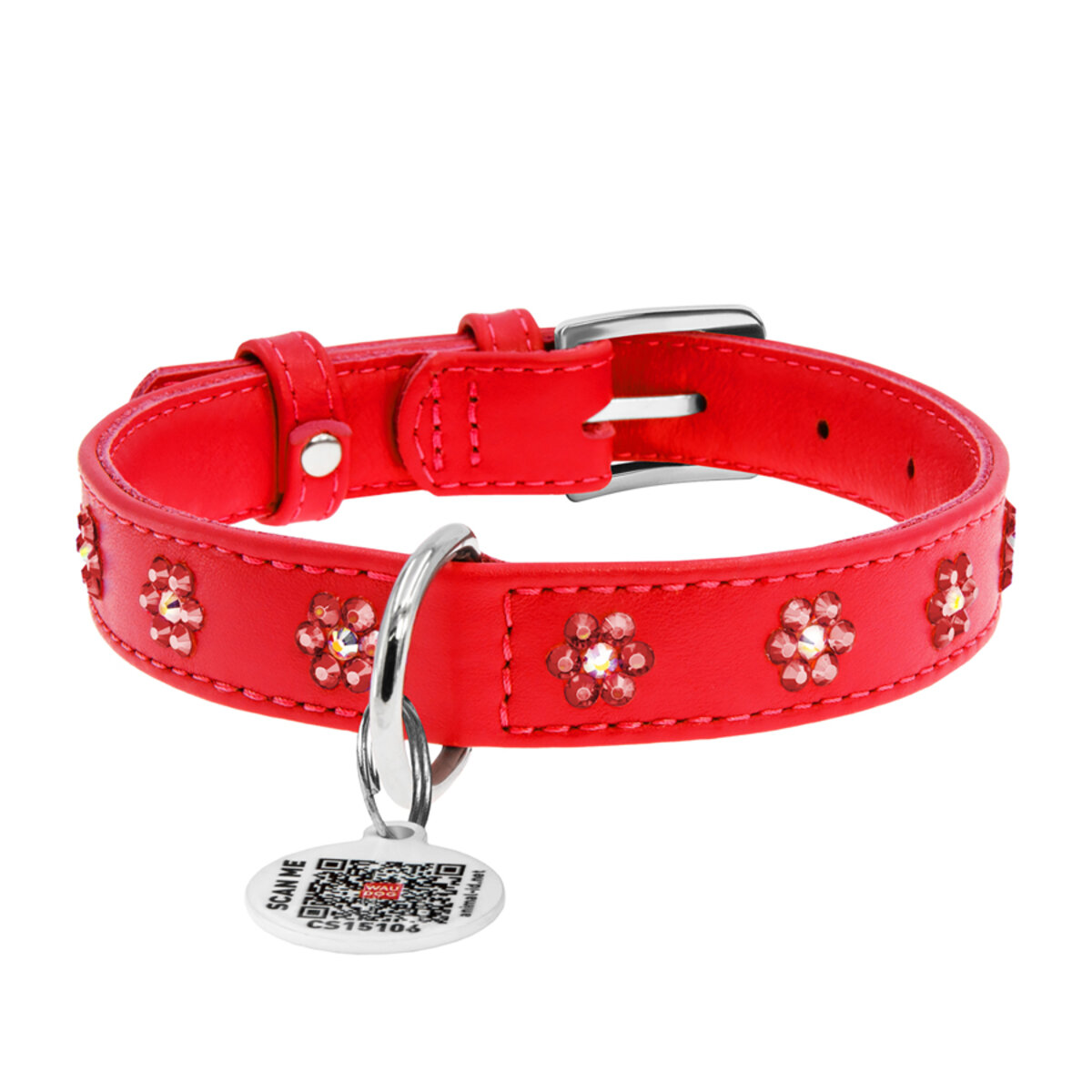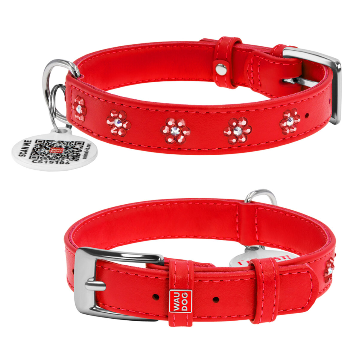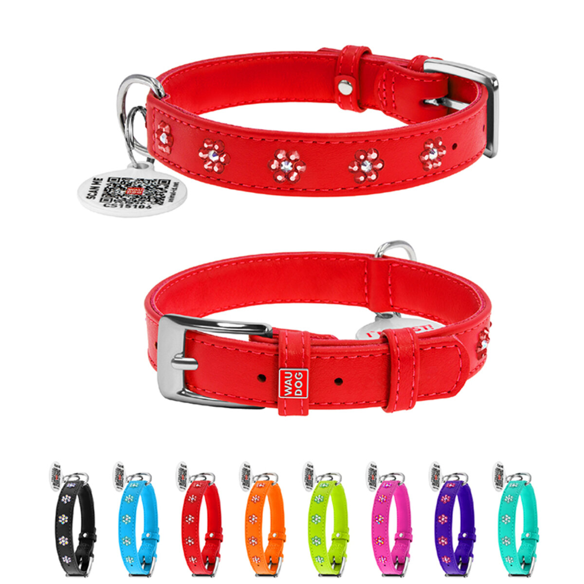 WAUDOG Glamour genuine leather dog collar with QR passport, with glued decorations "Flower", W 0,79", L 12"-15"