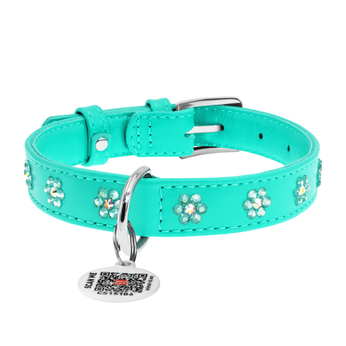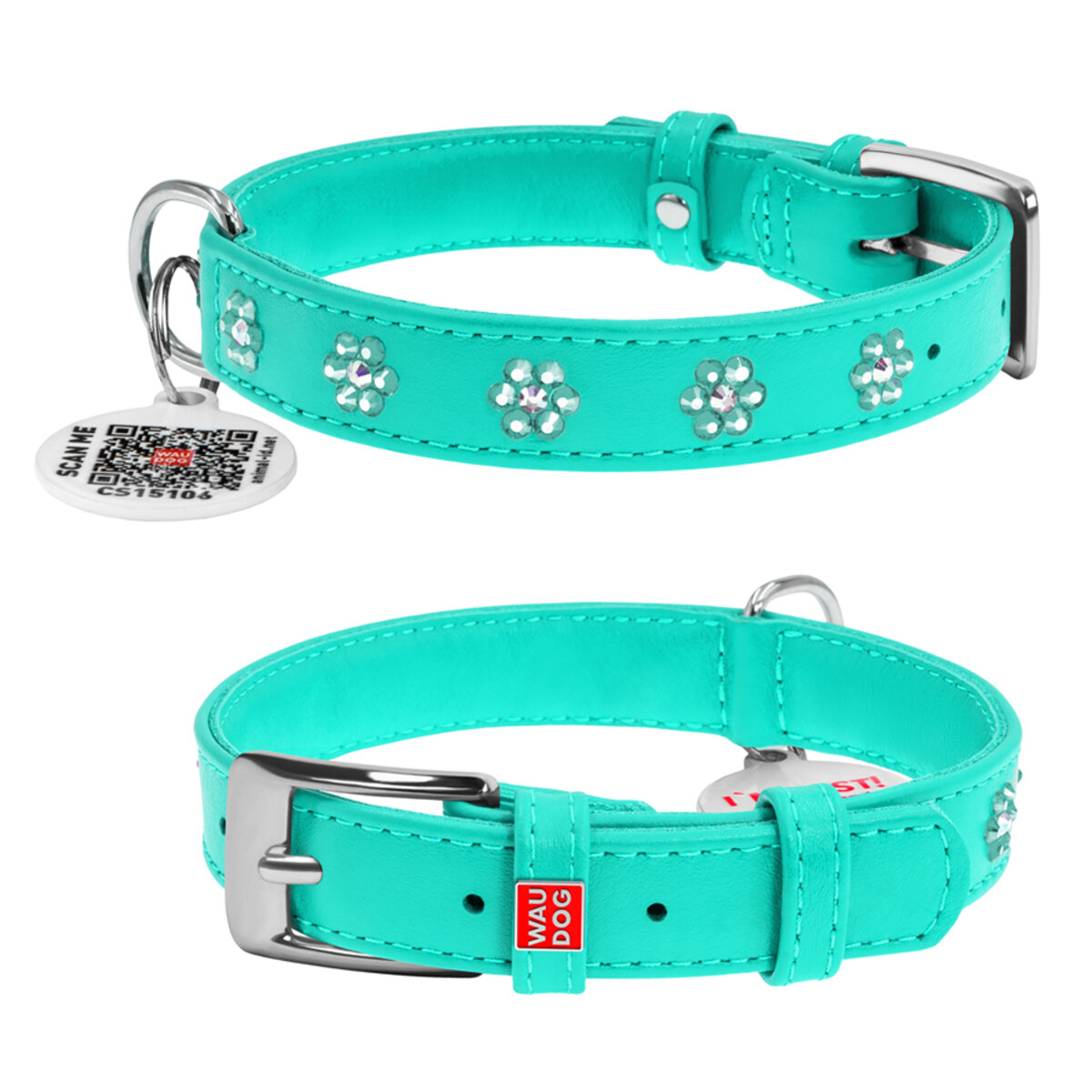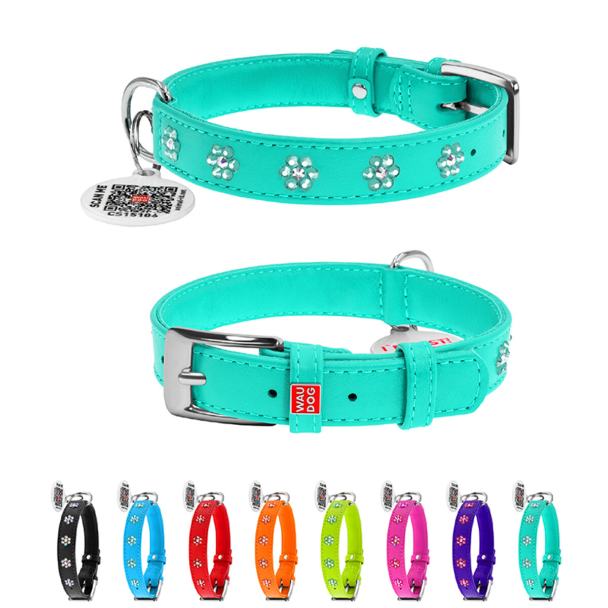 WAUDOG Glamour genuine leather dog collar with QR passport, with glued decorations "Flower", W 0,79", L 12"-15"