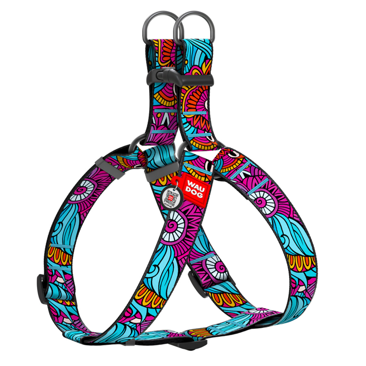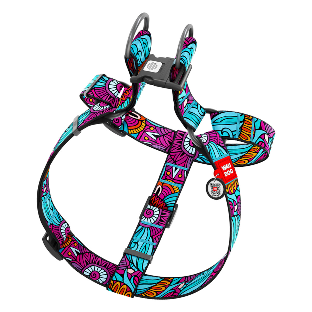 WAUDOG Mesh вreathable dog harness with QR pet tag, "Scales" design