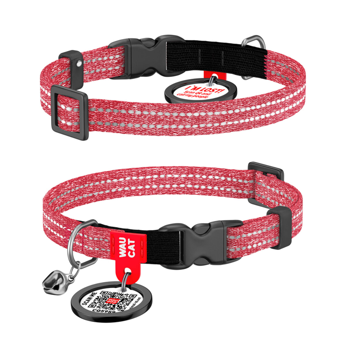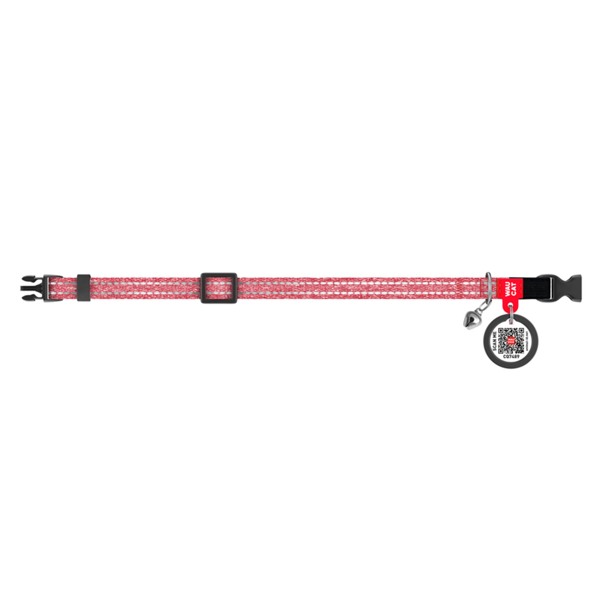 WAUCAT Re-cotton recycled material cat collar with QR-passport, reflective, plastic fastex, XS, W 3/8", L 8"-11", red
