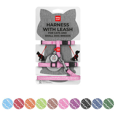 WAUDOG Nylon harness for cats and small dog breeds with QR Passport, "Zebra" design, plastic buckle