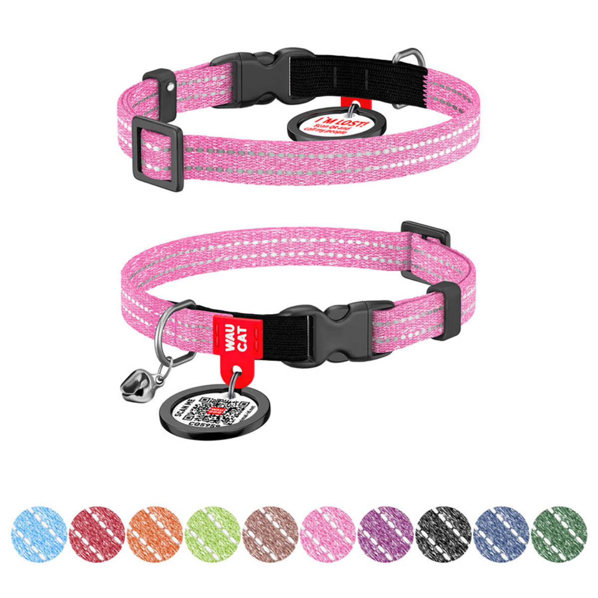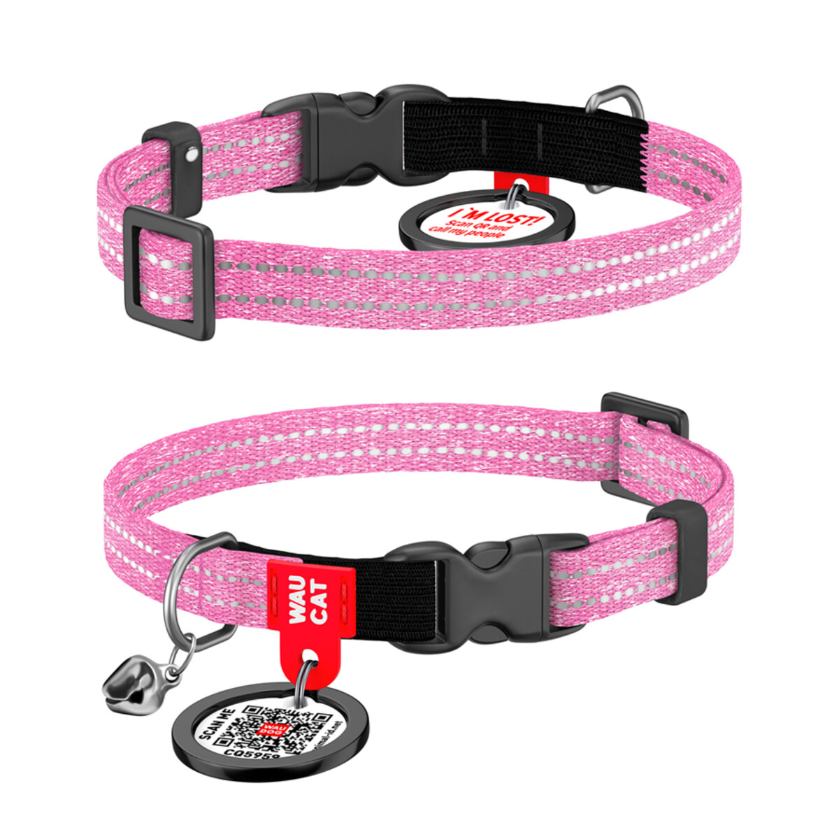 WAUCAT Re-cotton recycled material cat collar with QR-passport, reflective, plastic fastex, XS, W 3/8", L 8"-11", pink