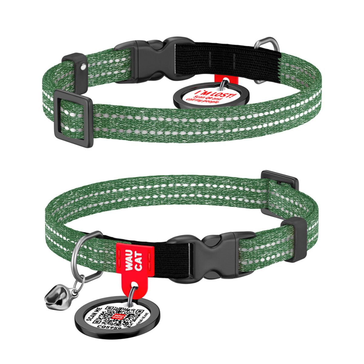 WAUCAT Re-сotton collars for cats will impress pet owners. The recycled cotton ribbon is made from environmentally friendly raw materials from a repeated technological cycle. The material is soft to the touch, but very durable at the same time, and the woven reflective thread ensures safety during walks in the dark. The collar has an elastic insert, a bell for scaring away birds and mice, and a smart ID tag with QR passport, making it not only comfortable but also practical and reliable.