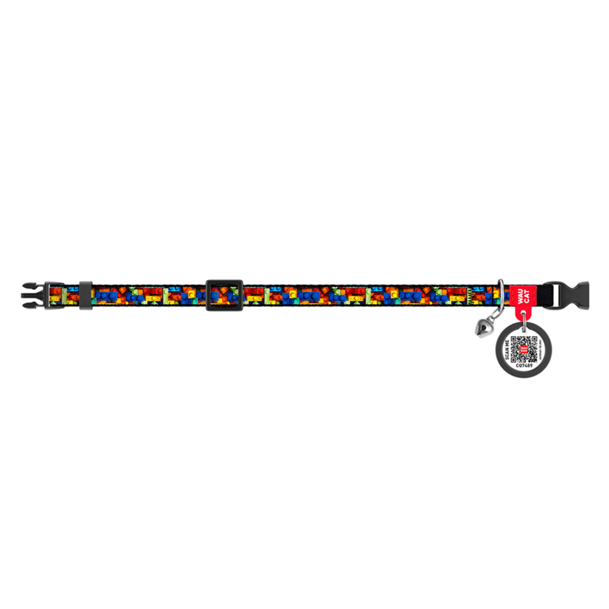 WAUCAT Nylon cat collar with QR passport, "Blocks" design, plastic fastex, XS, W 3/8", L 8"-11"