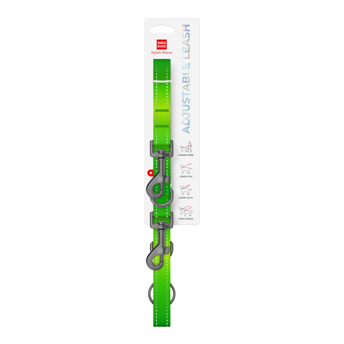 The WAUDOG Nylon Mono adjustable leash is a multifunctional accessory. Due to its adjustable length, the leash is ideal for both daily walks and training. Made of durable, wear-resistant nylon, it provides reliability and long-term usability. Reflective elements increase safety in the dark, and sturdy hardware ensures security in all situations. One of the main features is the ability to walk two dogs at once or to keep hands free during long walks.