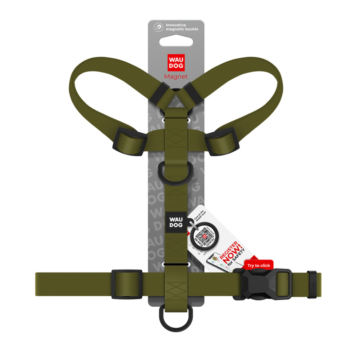 The WAUDOG Magnet harness is equipped with an innovative magnetic buckle that combines convenience and reliability. It allows for quick and easy fastening with just one hand, which is especially comfortable for owners of active dogs. Thanks to its thoughtful design, the buckle can withstand high loads and does not unfasten on its own, ensuring complete safety of pet even during the most energetic walks. The harness is made of COLLARTEX material, which does not absorb water and dirt. Due to its special H-shape, it fits perfectly on the dog and provides maximum comfort. The harness is designed in such a way that when the leash is pulled, there is no compression of the animal's breathing path.
