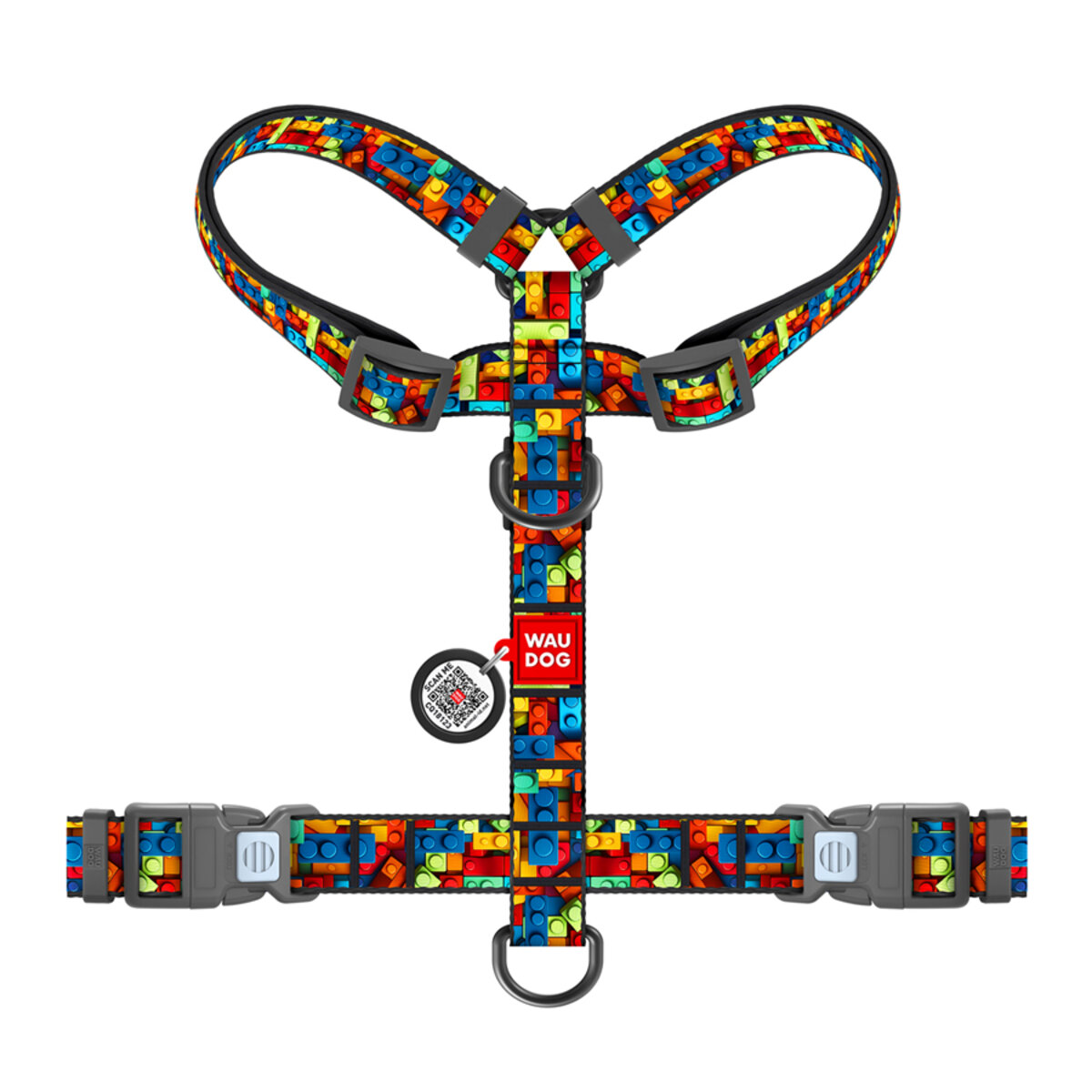 WAUDOG Nylon dog H-harness with QR-passport, "Blocks" design, plastic fastex, S, W 0,6", A 11,8"-17,7", B 14,2"-17,7"