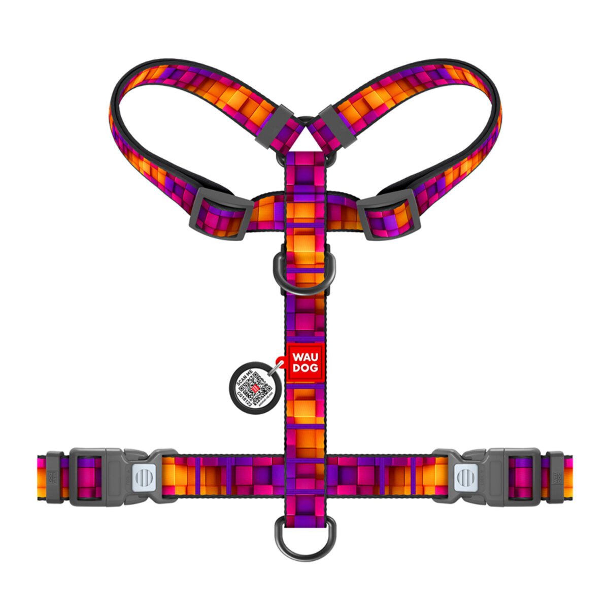 Thanks to its special H-shape, the WAUDOG Nylon harness fits the dog perfectly and provides him with maximum comfort. It is designed in such a way that when the leash is pulled, there is no compression of the animal’s respiratory tract. It has 2 half rings for the leash (upper and lower), which allows you to more evenly distribute the physical load on the dog’s musculoskeletal system.