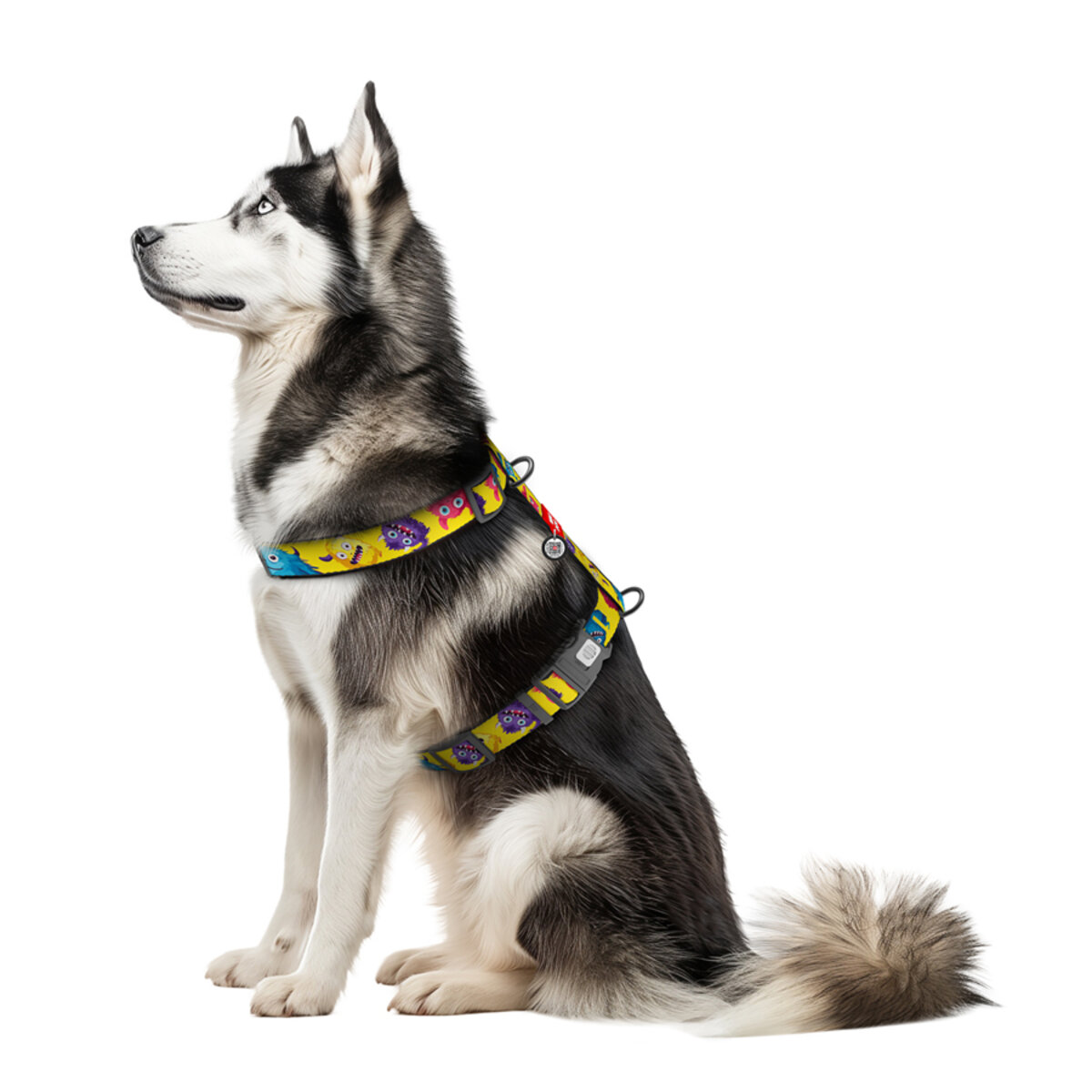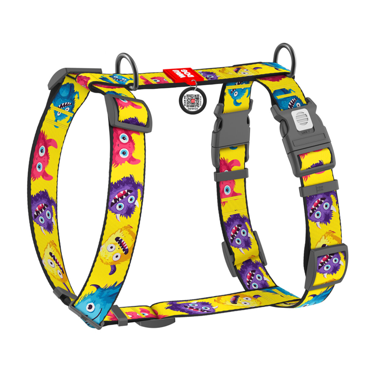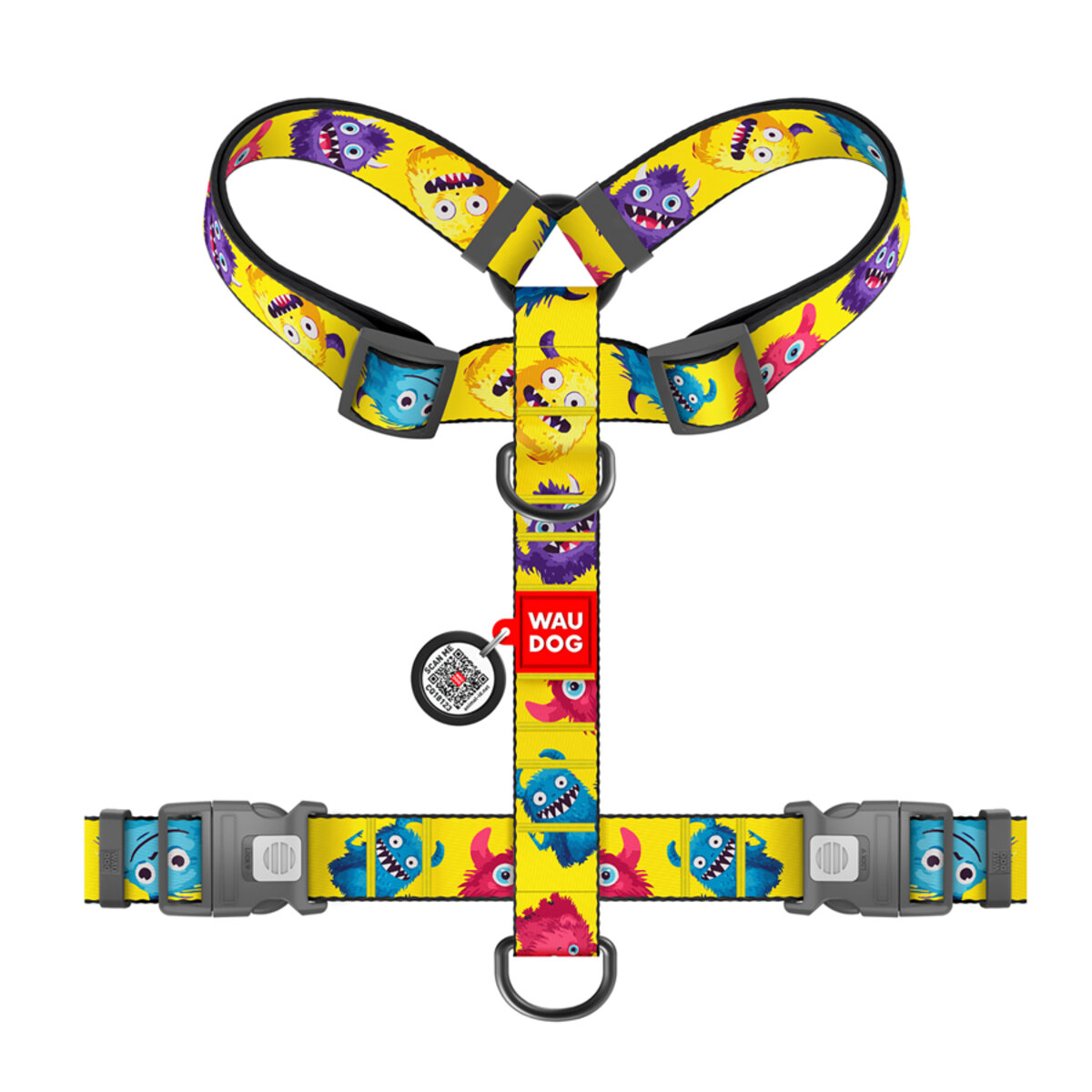 WAUDOG Nylon dog H-harness with QR-passport, "Furry monsters" design, plastic fastex, XL, W 1,4", A 23,6"-39,4", B 27,6"-39,4"