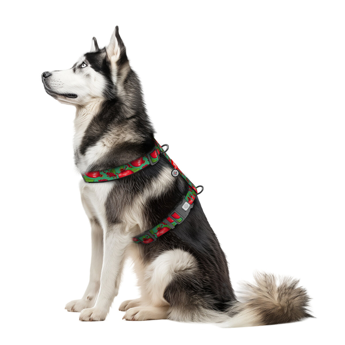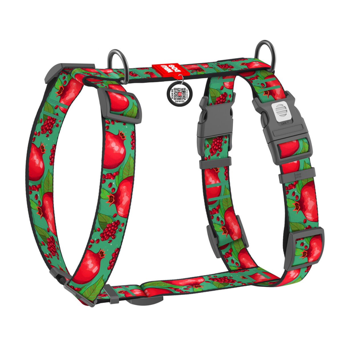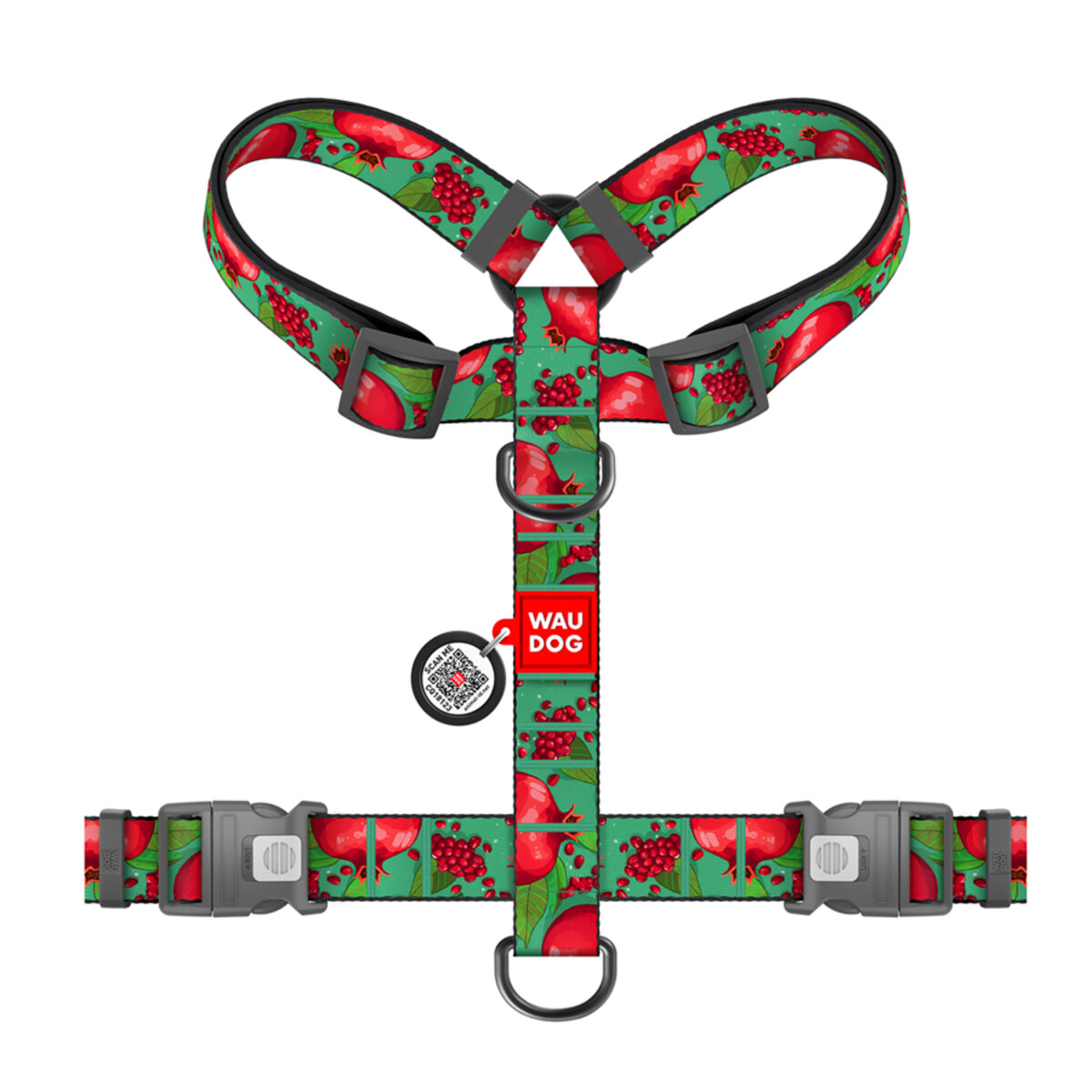 WAUDOG Nylon dog H-harness with QR-passport, "Pomegranate" design, plastic fastex,XL, W 1,4", A 23,6"-39,4", B 27,6"-39,4"