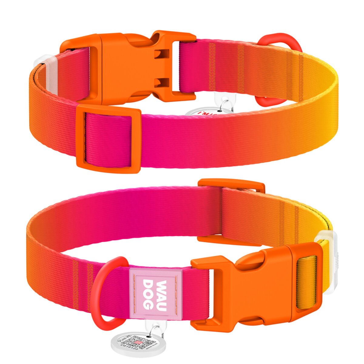 WAUDOG Nylon Recycled dog collar with QR-passport, gradient, plastic fastex, S, W 15 мм, L 9,8"-13,8", orange