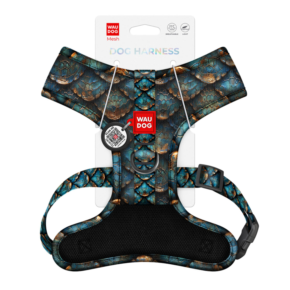 WAUDOG Mesh вreathable dog harness with QR pet tag, "Scales" design, S, A 11,8", B 13,8”-18,9”