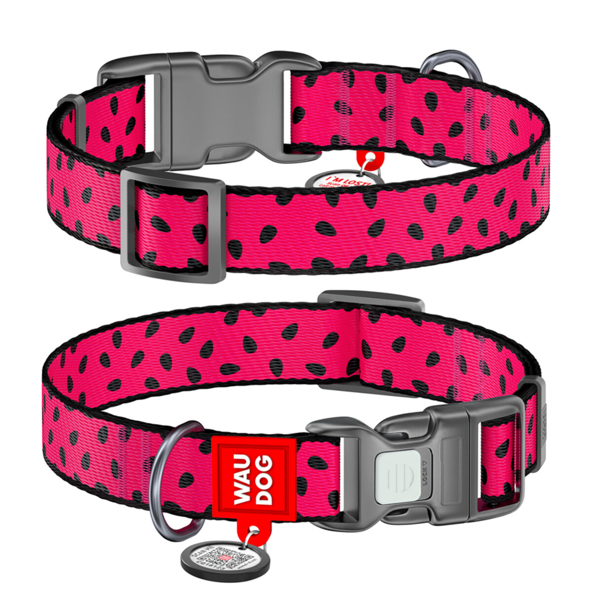 WAUDOG Nylon dog collar with QR passport, "Watermelon" design, plastic fastex, W 3⁄4", L 11"-15"