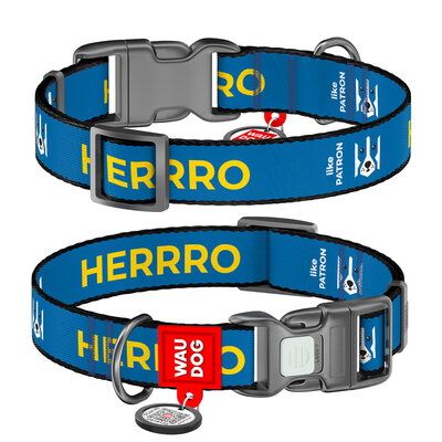 WAUDOG Nylon dog collar with QR pet tag, "Patron" design, metal fastex