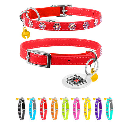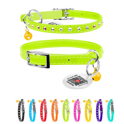 WAUCAT Glamour genuine leather cat collar with QR passport, without decorations