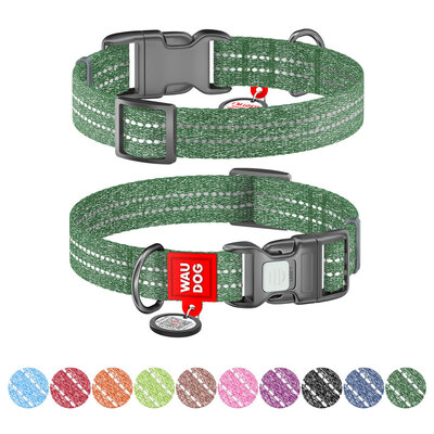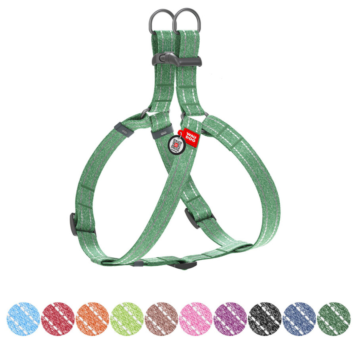 WAUDOG Re-cotton recycled material dog harness with QR passport, reflective, plastic fastex, S, W 5⁄8", L 15,74"-21,65" Green
