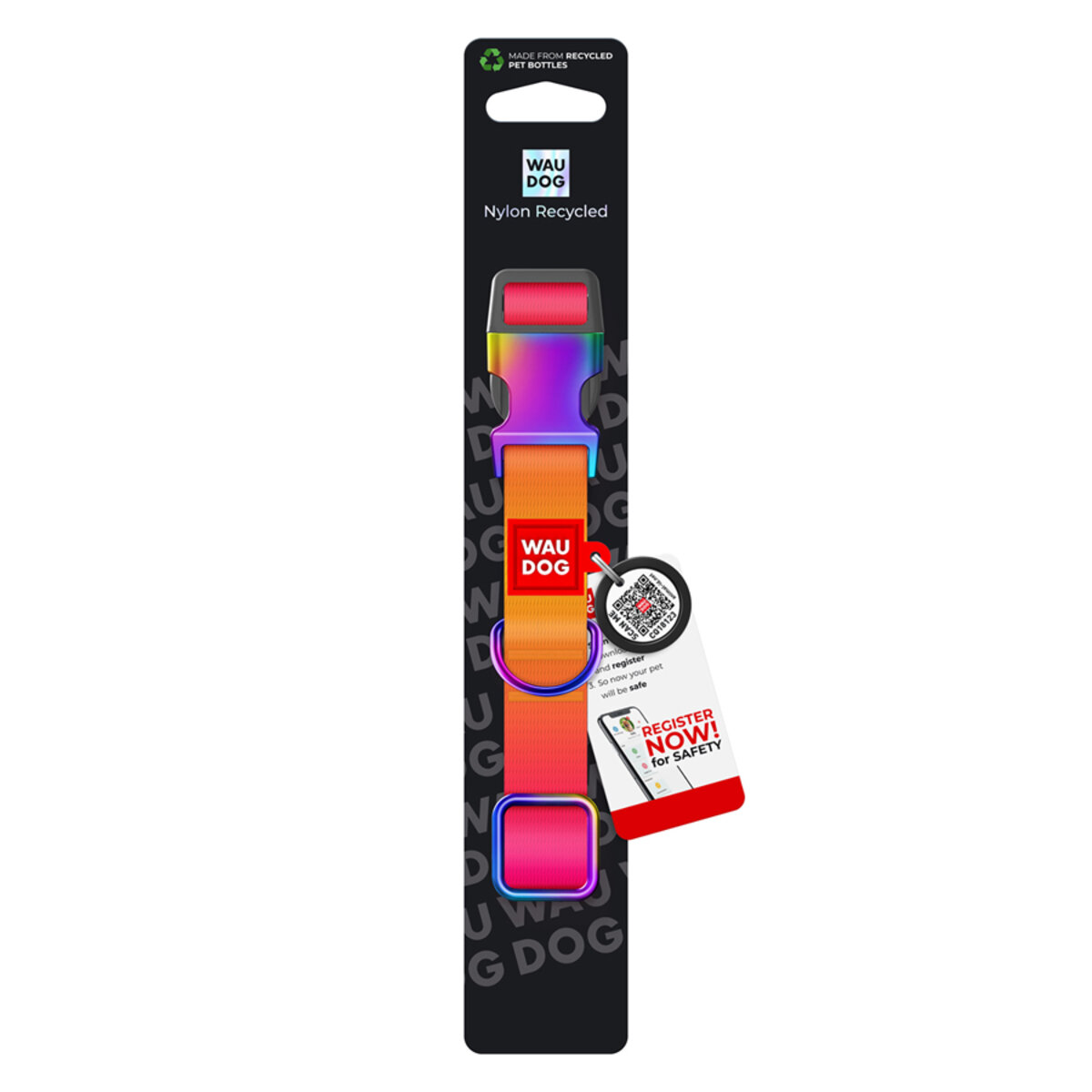 The collar is made from eco-friendly and sustainable R-PET tape, made from recycled plastic bottles.
