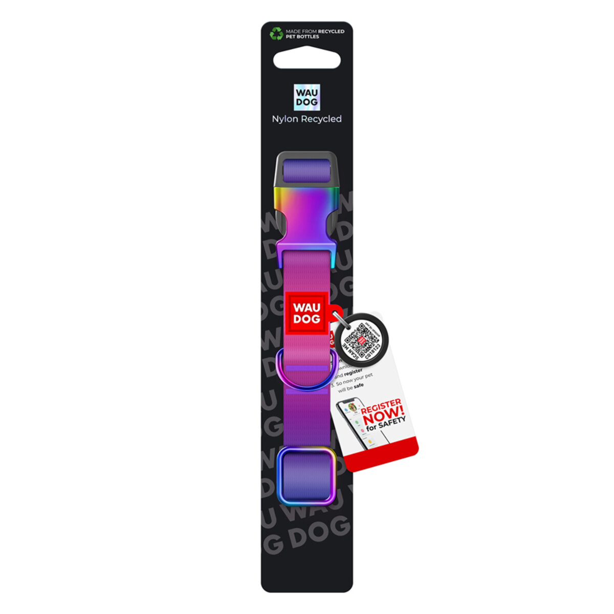 The collar is made from eco-friendly and sustainable R-PET tape, made from recycled plastic bottles.