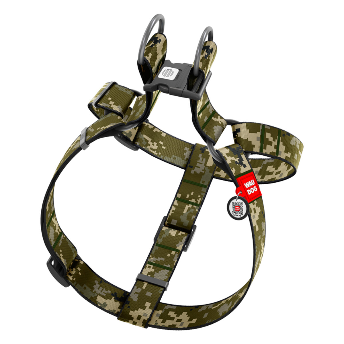 Thanks to its special shape, the WAUDOG Nylon harness fits the dog perfectly and provides him with maximum comfort. It is designed in such a way that when the leash is pulled, there is no compression of the animal’s respiratory tract. It has 2 half rings for the leash (upper and lower), which allows you to more evenly distribute the physical load on the dog’s musculoskeletal system.