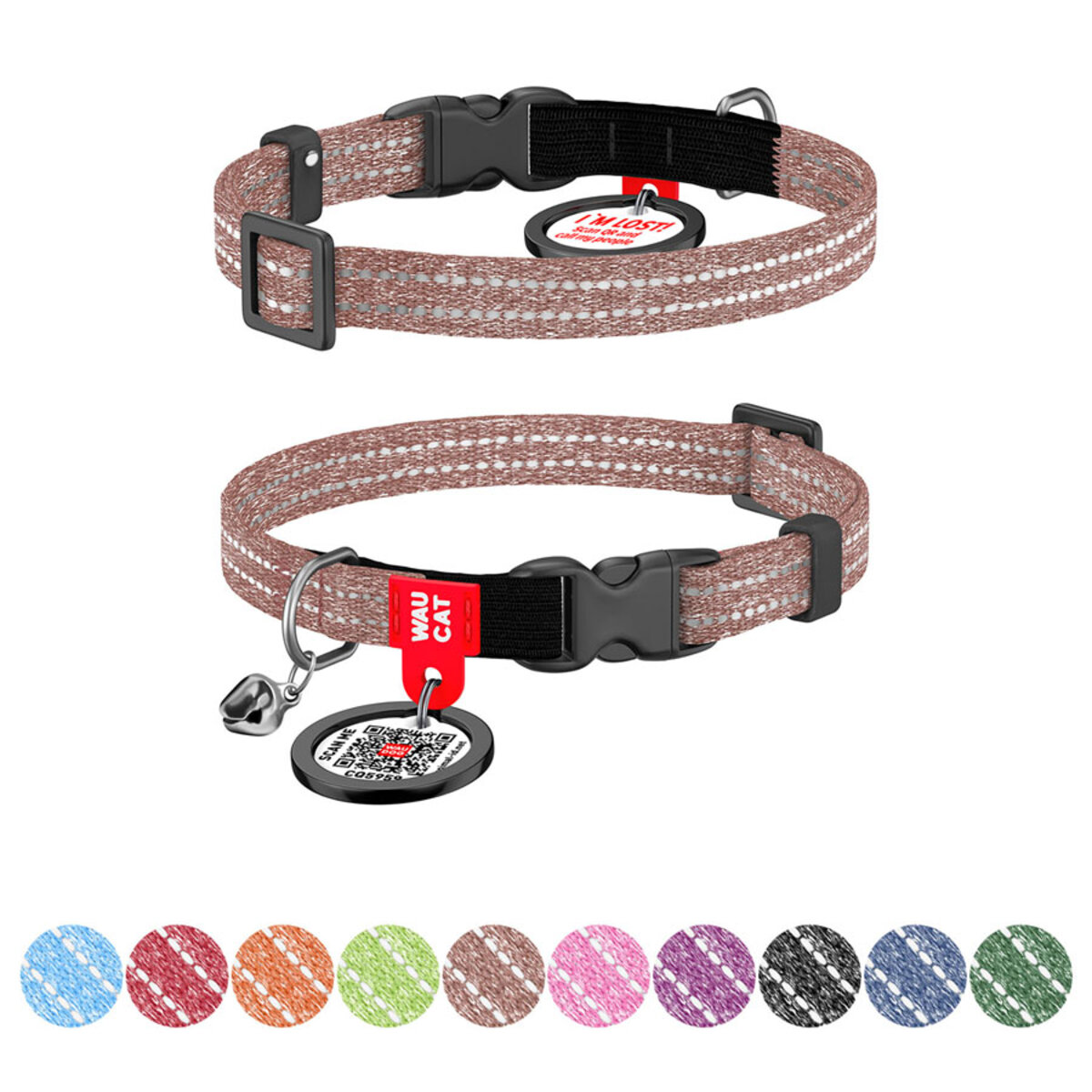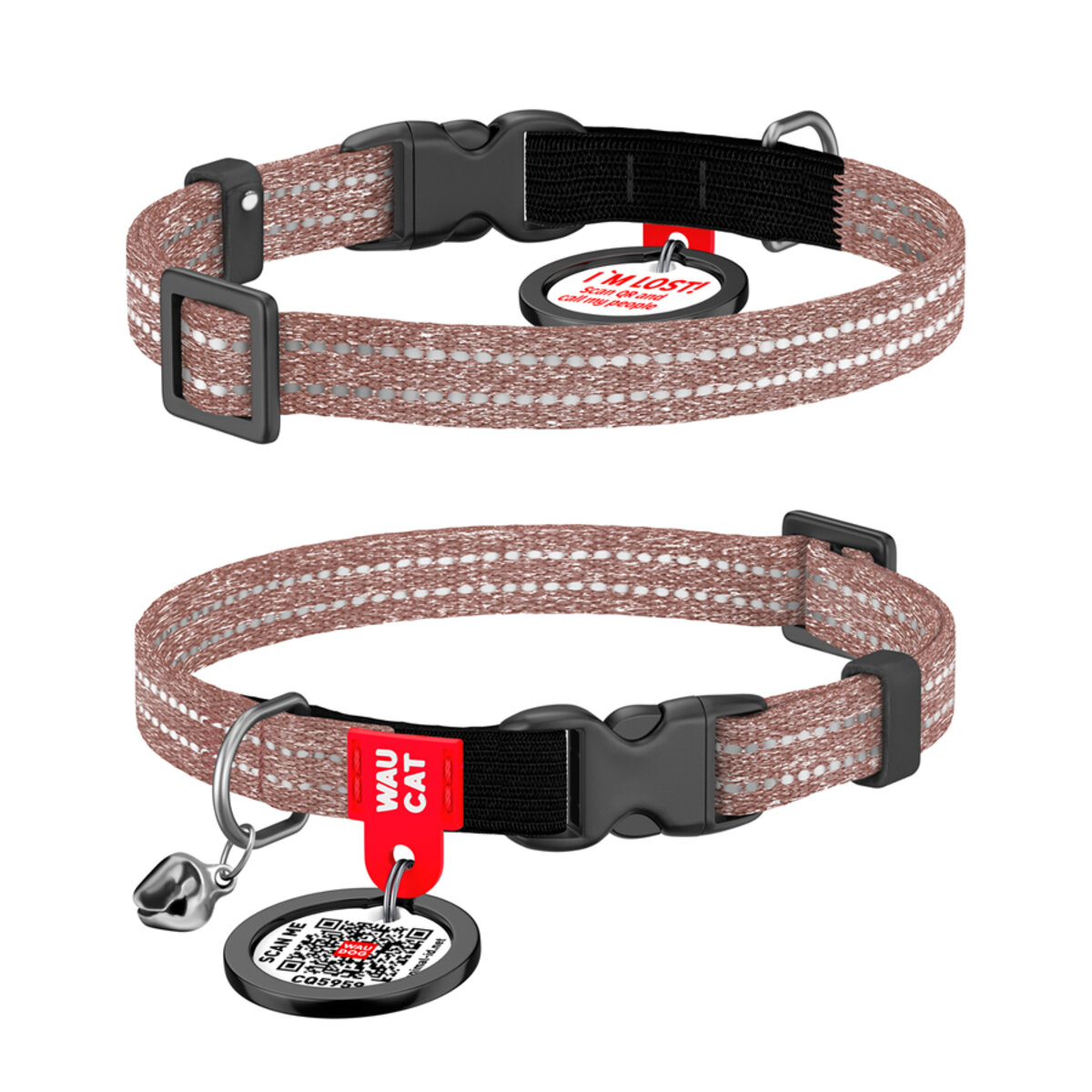 WAUCAT Re-cotton recycled material cat collar with QR-passport, reflective, plastic fastex, XS, W 3/8", L 8"-11", brown