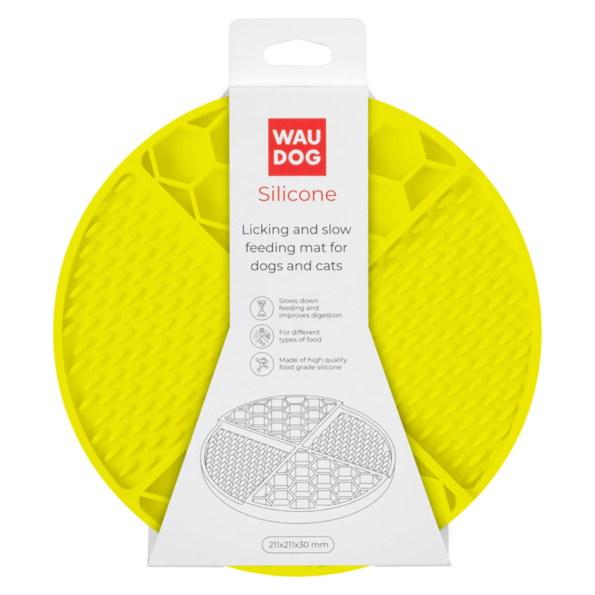 WAUDOG Silicone Licking and slow feeding mat, 8.31"x8.31"x1.18", yellow
