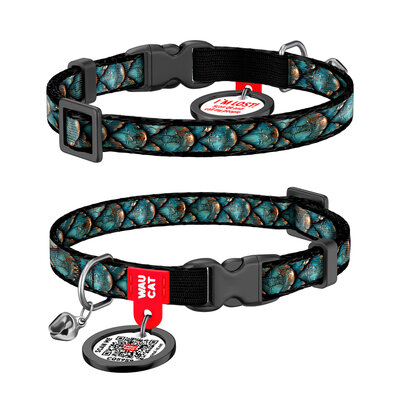 279-0179 WAUCAT Nylon cat collar with QR pet tag, "Scales" design, plastic fastex, XS, W 3/8", L 8"-11"