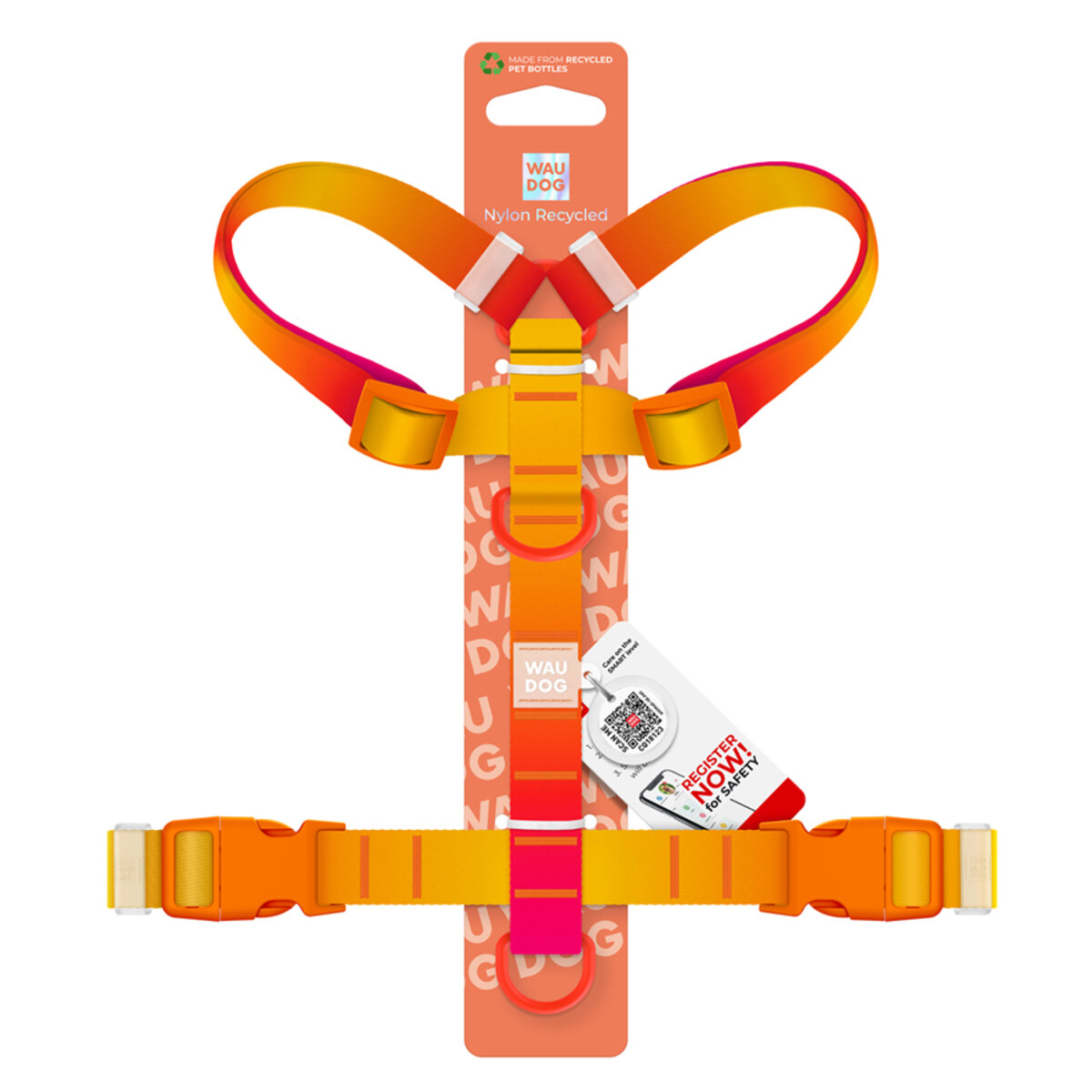 The updated WAUDOG Nylon Recycled harness is equipped with two fastexes on the back, which simplifies the process of putting on and taking off. Thanks to its special H-shape, harness fits the dog perfectly and provides him maximum comfort. It has 2 half rings for the leash (upper and lower), which allows you to more evenly distribute the physical load on the dog’s musculoskeletal system.