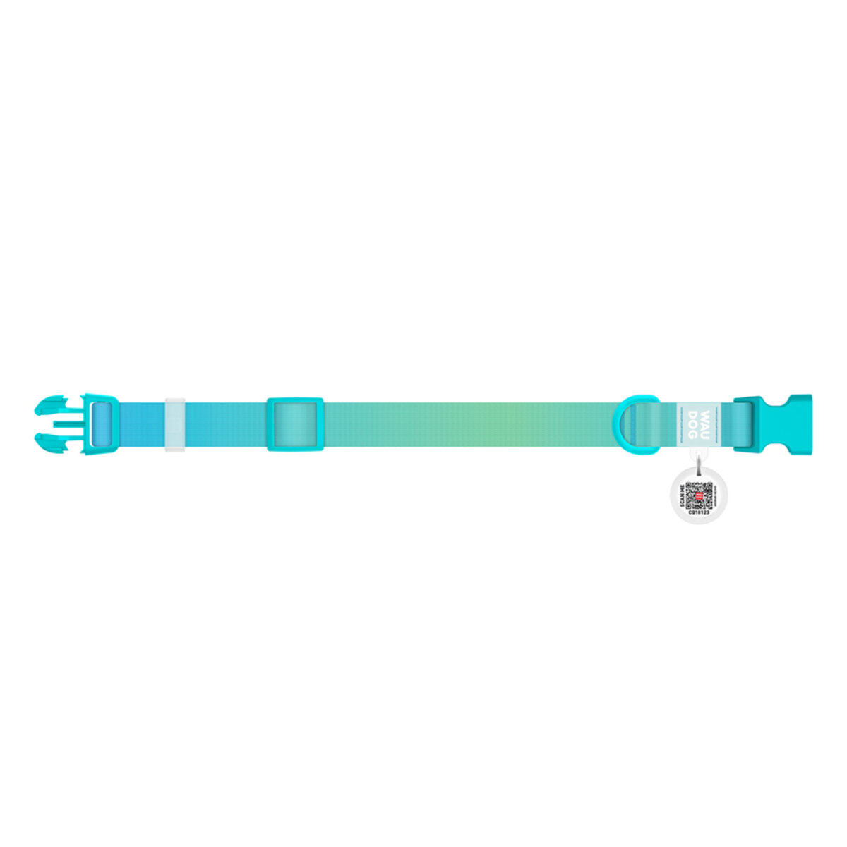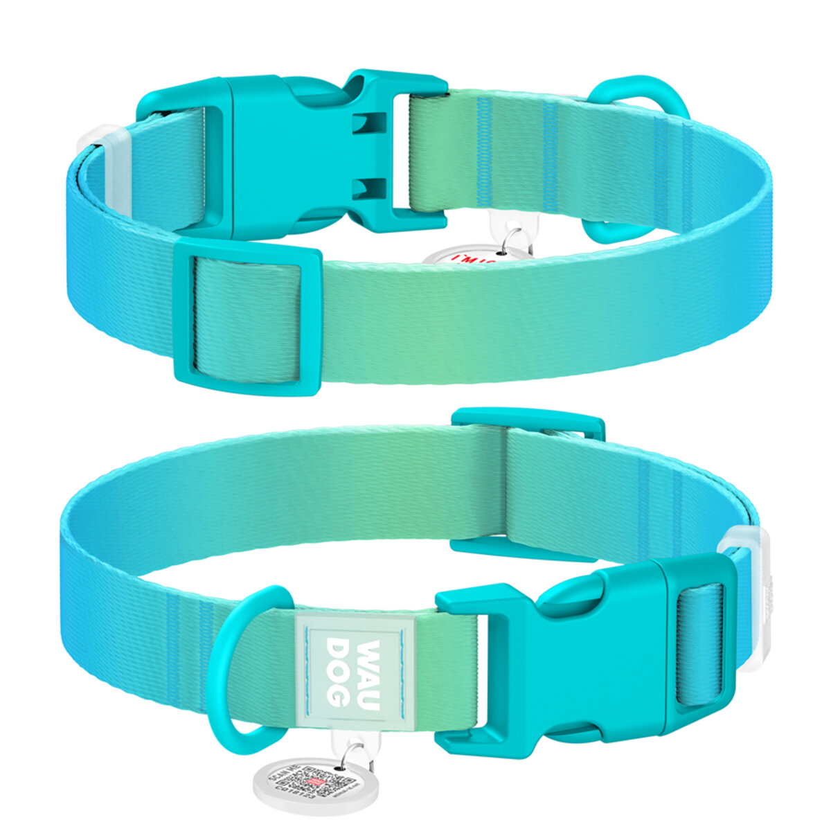 WAUDOG Nylon Recycled dog collar with QR-passport, gradient, plastic fastex, L, W 1", L 13,0"-19,3", blue